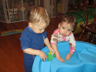Rachel & Keith gave us a water table for S&Z's birthday. First we tried it inside with water,